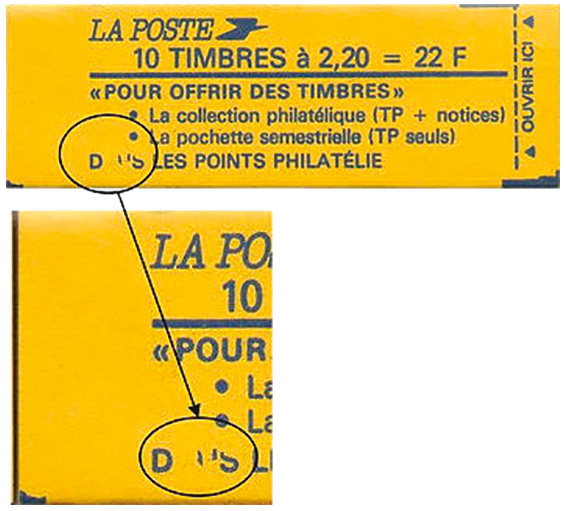 Les clichés obtenus pour le texte correspondent à 10 couvertures par tour pour les carnets de 10 timbres (ou 5 pour les carnets de 20 timbres).