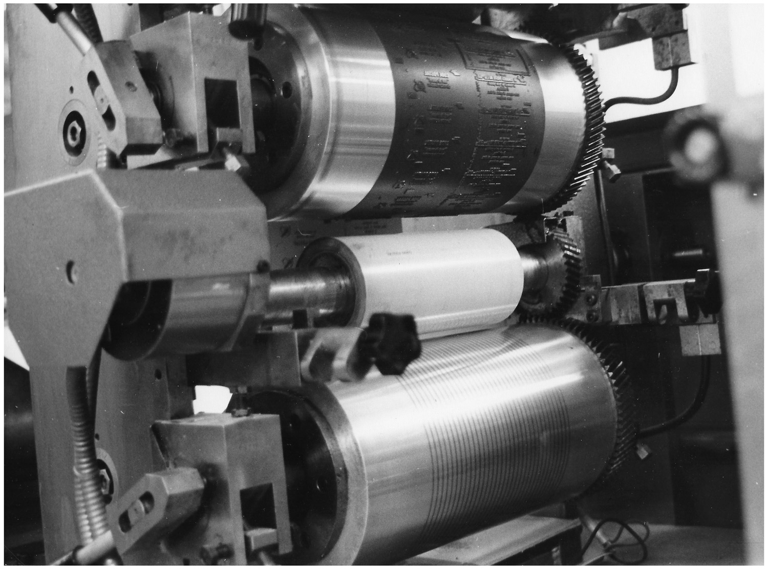 Depuis l’acquisition des confectionneuses de carnets pour distributeurs dans les années 60, l’impression des couvertures des carnets est réalisée en flexographie. Voici dans le détail les éléments nécessaires :